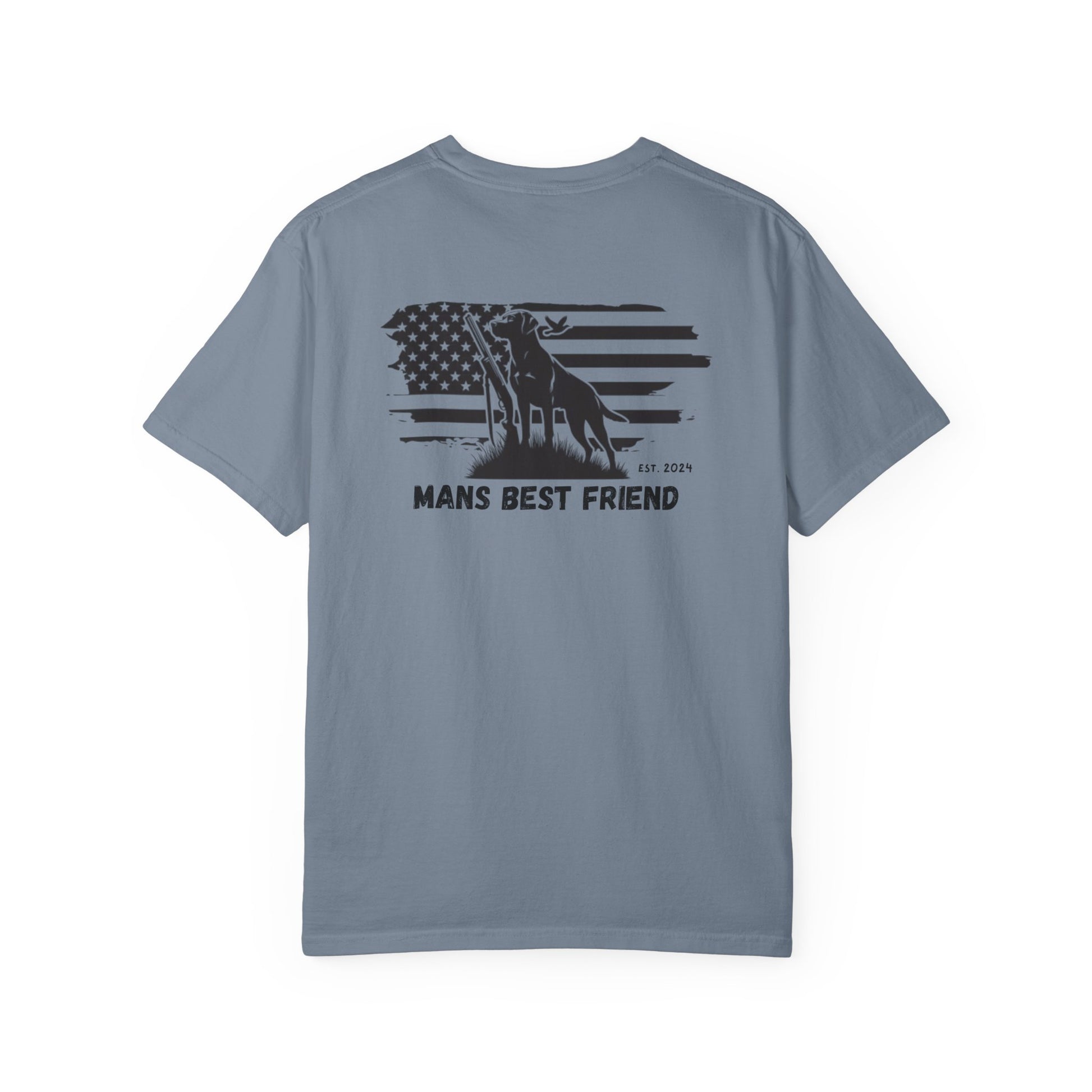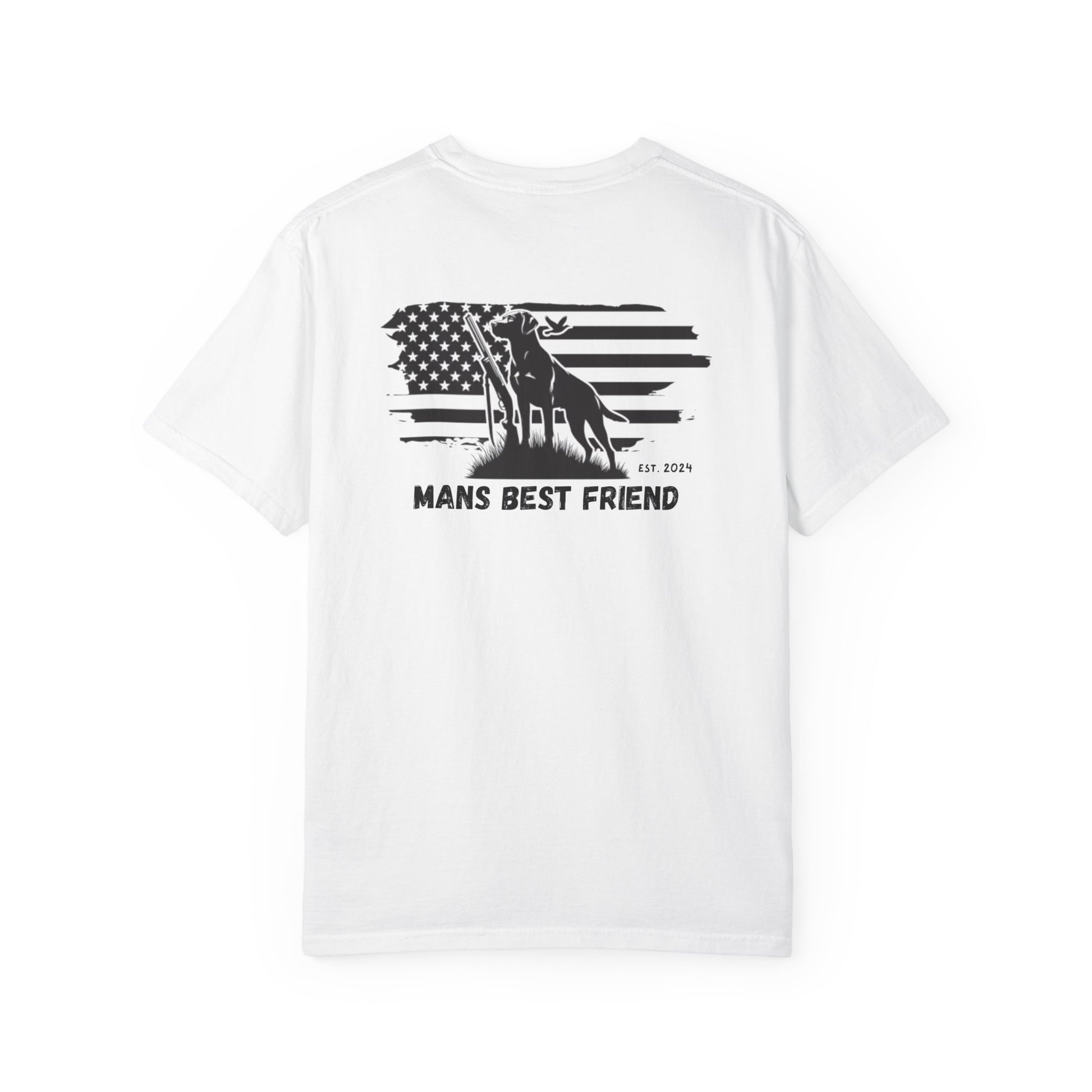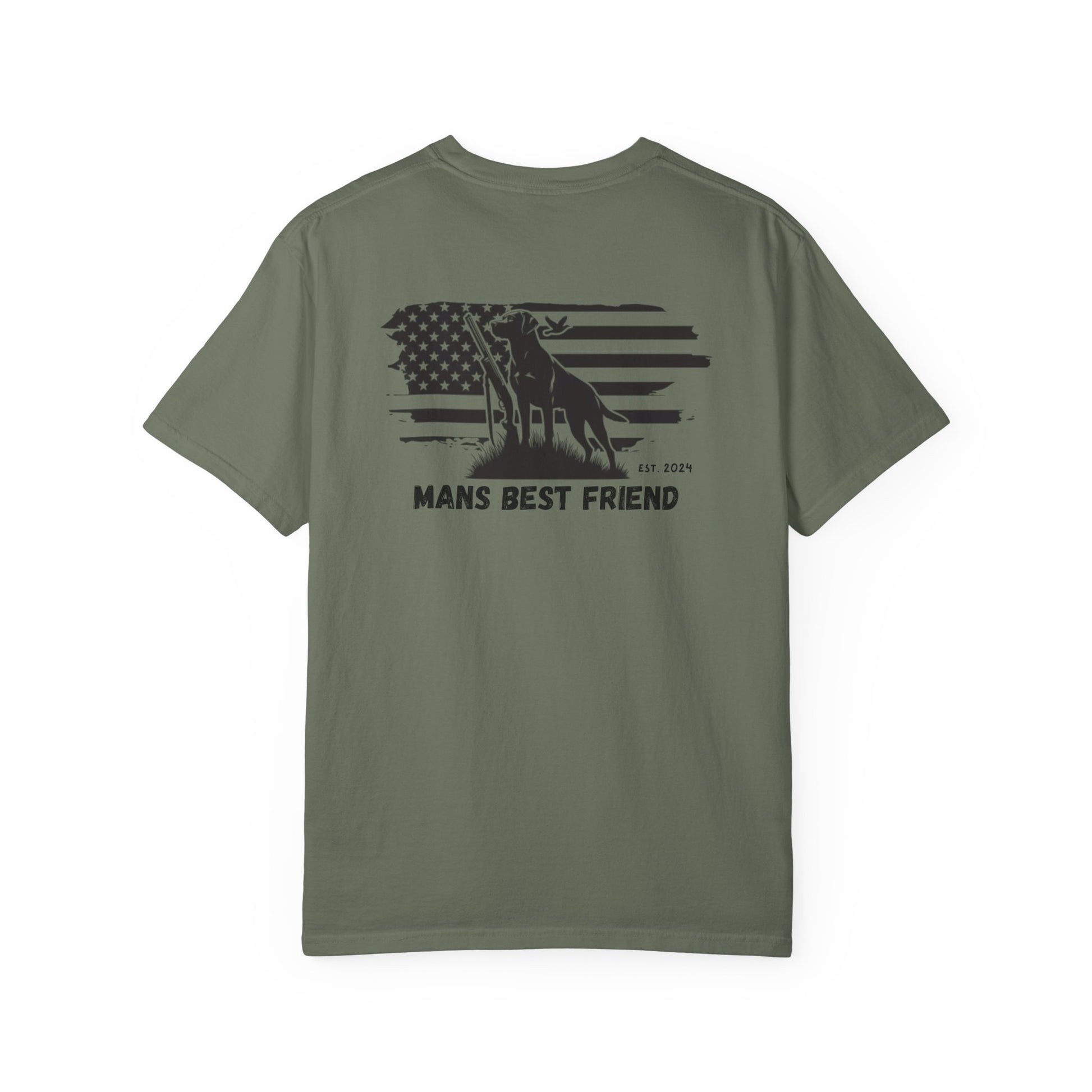 Premium screen-printed “Man’s Best Friend” hunting dog + American flag design
